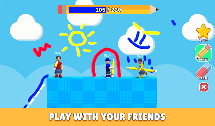 一个人画太单调?那就叫上朋友一起!这是一款强调「共同作战」的多人游戏,你们可以分工合作,你负责画路,他负责冲刺;或者互相竞争,看谁能用最少的墨水画出最天才的捷径。